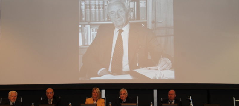 El primer panel del Congreso se dedicó a realizar una semblanza de los Profesores Manuel Olivencia, Francesco Berlingieri y Aurelio Menéndez, recientemente fallecidos. La semblanza de D. Manuel Olivencia fue realizada por D. Francisco Ballester, Socio de Honor de Cuatrecasas y colaborador muy cercano del Prof. Olivencia durante décadas. Del recuerdo de D. Francesco Berlingieri se encargó el Prof. Rafael Illescas, quien compartió con el homenajeado igualmente años de trabajo en las tareas de unificación del Derecho Marítimo. Tras la conferencia del Profesor Illescas, D. Giorgio Berlingieri tomo la palabra emocionada para agradecer a la Asociación el homenaje a su padre, y destacando sus grandes vínculos con la Asociación Italiana de Derecho Marítimo.